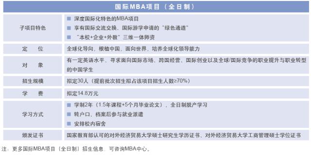 注: 招生信息如有变化,以对外经贸大学研究生院及MBA中心、EMBA中心网站后续公布的信息和实时更新的通知为准。