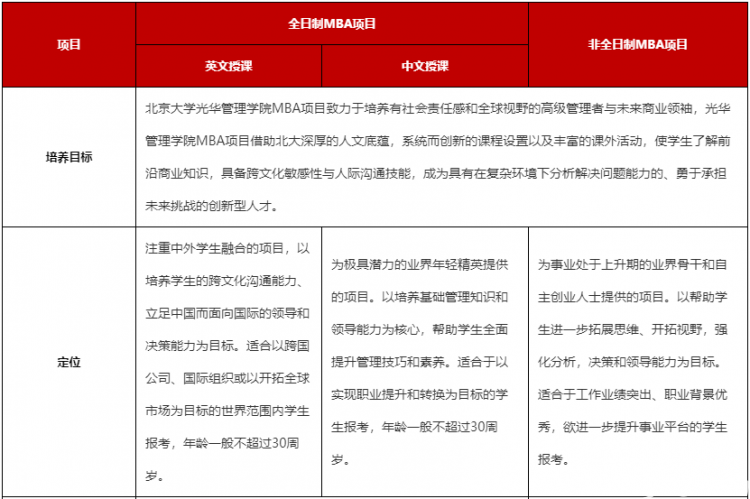 3.获得北京大学光华管理学院MBA预录取资格的申请人,在报考北京大学并参加全国管理类联考后,如联考成绩未达到国家A类线或北京大学思想政治理论考试成绩不合格,可保留原项目预录取资格至次年。
