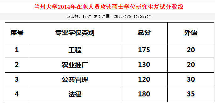 兰州大学2014年在职工程硕士GCT复试分数线复试通知