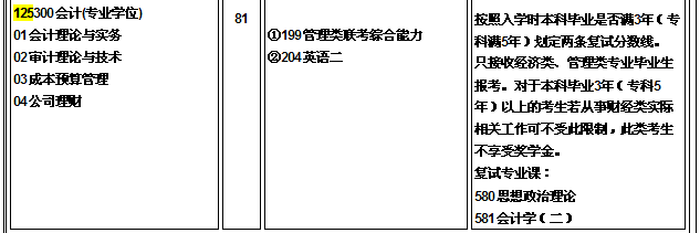 2.只接收经济类、管理类专业毕业生报考。对于大学本科毕业3年(获得国家承认的高职高专毕业学历5年)及以上的考生若从事财经类实际相关工作可不受此限制,但此类考生不享受奖学金。